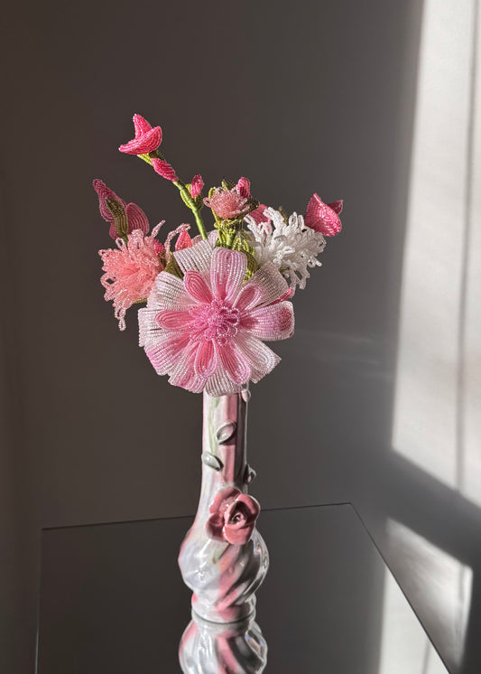 cream & pink rose vase